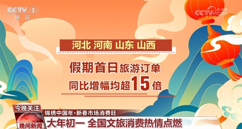 這個春節(jié)假期,全國的文旅消費熱情也被點燃。數(shù)據(jù)顯示,多地在大年初一迎來游客高峰,河北、河南、山東、山西四省在假期首日的旅游訂單同比增幅均超15倍,而屢屢刷屏的洛陽各景點門票訂單更是同比增長35倍。