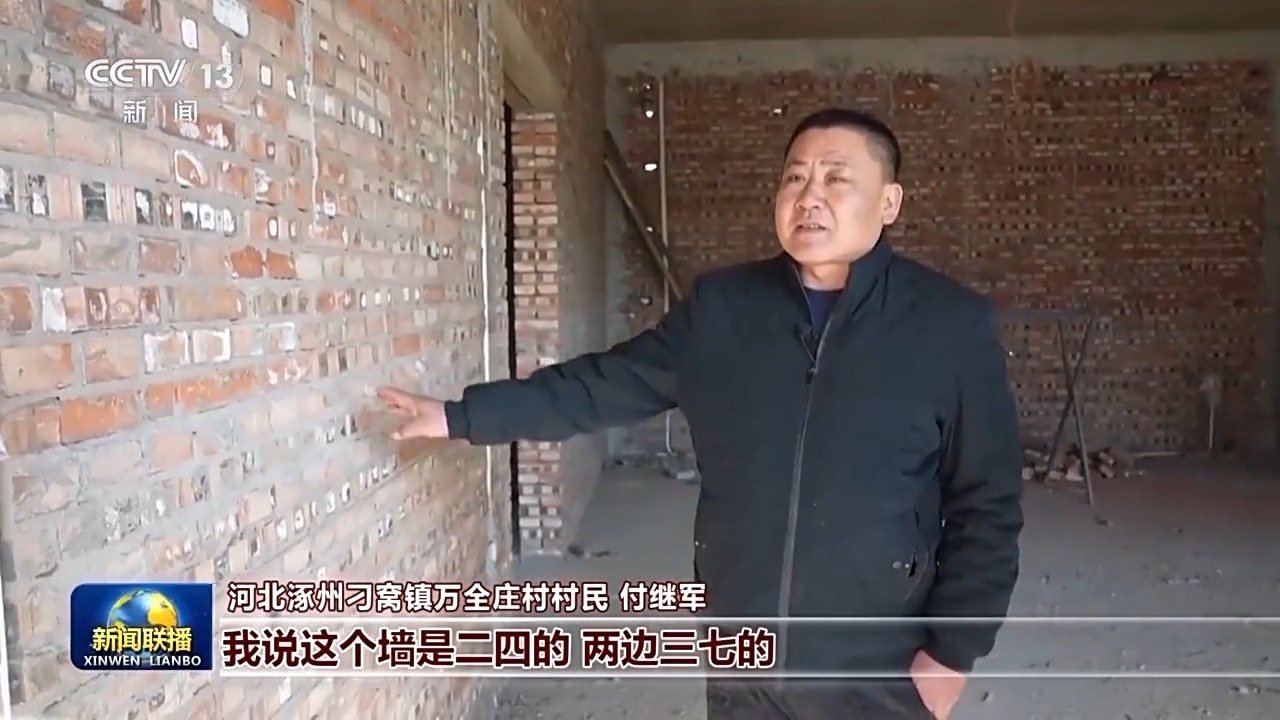 河北涿州刁窩鎮(zhèn)萬全莊村村民 付繼軍:去年,總書記來那會兒這個(gè)房子剛壘墻壘到這個(gè)位置,總書記還這么摸了摸,說這活兒干得挺好,問了問我這是三七墻呀二四墻呀,我說這個(gè)墻是二四的,兩邊三七的,看著總書記特別溫暖,那會兒真是掉眼淚。準(zhǔn)備抓緊裝修,盡快搬進(jìn)來,村里邊現(xiàn)在大家也都干勁挺大的,盡最大努力,把日子過好。