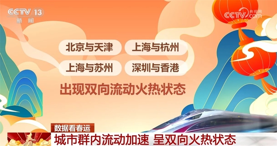 數(shù)據(jù)顯示,城市群內(nèi)的流動(dòng)也在明顯加速,尤其是北京到天津、上海到杭州、上海到蘇州、深圳到香港這些熱門(mén)路線,出現(xiàn)了雙向流動(dòng)火熱的狀態(tài)。