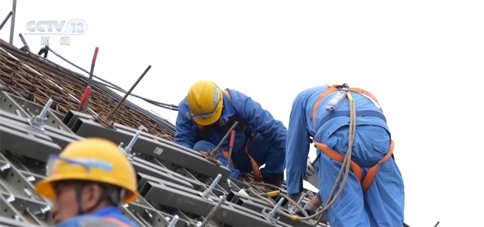 總臺央視記者 吳天白:在“華龍一號”太平嶺1號機組的最高點穹頂,我們可以看到幾十位工作人員正在加緊施工,他們今天的主要工作是對已經(jīng)完成安裝的穹頂鋼筋進行檢查驗收?,F(xiàn)場工作人員告訴我,別看穹頂面積有5個籃球場這么大,他們的工作都是以毫米為單位的精細活。