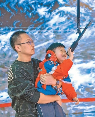 市民在北京城市圖書館元宇宙體驗館內游玩。