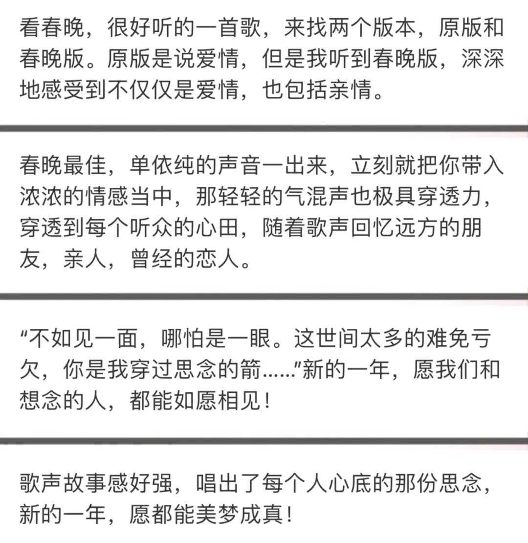 這首《不如見(jiàn)一面》迅速?zèng)_上各大音樂(lè)平臺(tái)的熱搜榜首位,“從春晚來(lái)的”網(wǎng)友涌進(jìn)評(píng)論區(qū),書(shū)寫(xiě)起自己的故事。一首氣質(zhì)凄美的歌,為何能如此抓人,讓人忍不住反復(fù)“單曲循環(huán)”?
