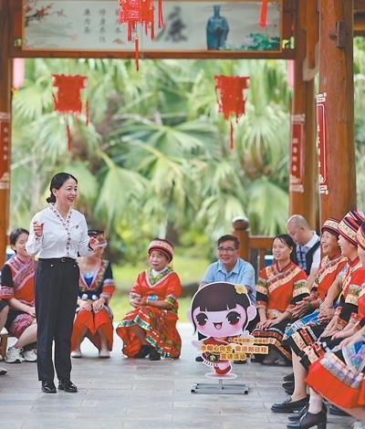廣西壯族自治區(qū)桂林市恭城瑤族自治縣,黨員在“桂姐姐”課堂上進(jìn)行宣講。近年來,當(dāng)?shù)匾劳行聲r(shí)代文明實(shí)踐中心,組織“桂姐姐”宣講隊(duì),傳播黨建、法律和婦女兒童權(quán)益保障等知識(shí)。各地新時(shí)代文明實(shí)踐中心成為精神文明建設(shè)的重要陣地,在加強(qiáng)思想政治引領(lǐng)、培育社會(huì)文明風(fēng)尚等方面發(fā)揮著重要作用。劉教清攝(人民視覺)
