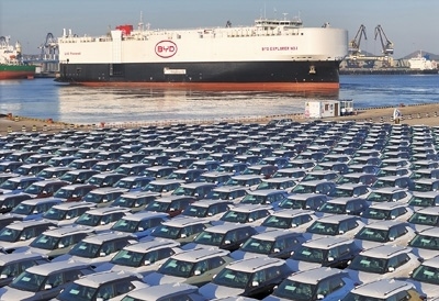中國首艘由國內(nèi)船企建造、專門用于國產(chǎn)新能源汽車出口的汽車運(yùn)輸船“比亞迪開拓者1號”搭載新能源汽車從山東煙臺(tái)港啟航。2023年,中國新能源汽車產(chǎn)銷量均突破900萬輛,其中出口120.3萬輛,同比增長77.6%,成為經(jīng)濟(jì)高質(zhì)量發(fā)展中的一抹亮色。唐 克攝(影像中國)
