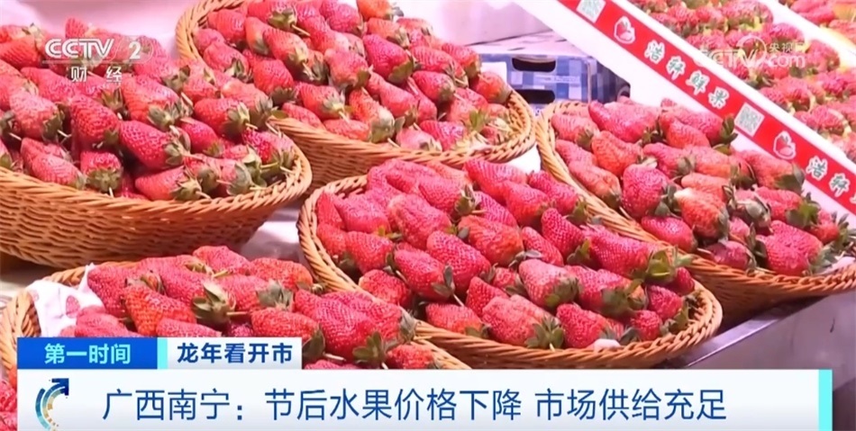 春節(jié)假期過后,在廣西南寧,記者走訪發(fā)現(xiàn)水果市場有所“降溫”,大家想要品嘗車厘子、草莓等水果正是好時機。