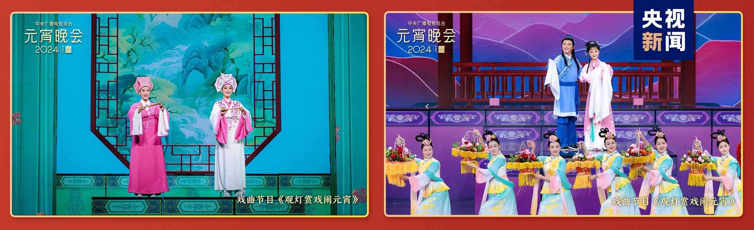 戲曲節(jié)目中,伴隨著“火樹千春妍,元夕月正圓,歡歌笑語喧”的戲腔戲韻,閩劇戲歌首次亮相總臺(tái)元宵晚會(huì)。其他劇種還玩上了跨界表演,熟悉的旋律響起,站在舞臺(tái)上的表演者卻是令人直呼意外的“混搭”組合。陳麗君與黃齡攜手帶來越劇《梁祝》選段,潘檸靜與沙溢共唱黃梅戲《天仙配》,在上元之夜演繹傳世愛情故事,“戲曲真的出圈了”“誰說年輕人不聽?wèi)颍肋h(yuǎn)為經(jīng)典唱段打call”。
