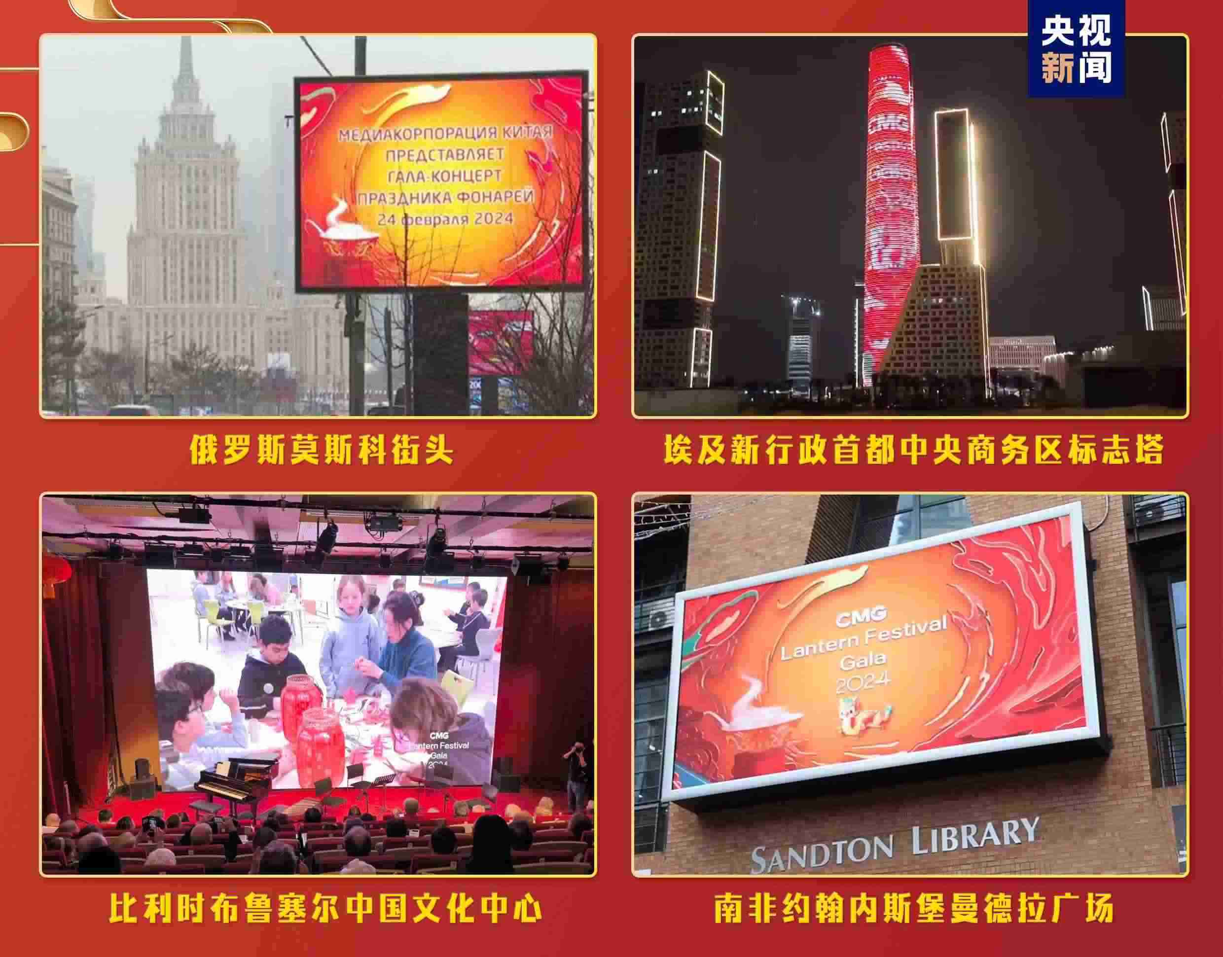 “海外千屏”持續(xù)閃耀,跨越山海點(diǎn)亮全球地標(biāo)。充滿濃郁中國年味兒的《2024年元宵晚會(huì)》宣傳片登陸美國、德國、意大利、俄羅斯、南非、巴西、阿聯(lián)酋等全球17個(gè)國家、25座城市的2627塊戶外大屏和院線銀幕。意大利米開朗琪羅廣場、非洲第一高樓——埃及新行政首都中央商務(wù)區(qū)標(biāo)志塔等地標(biāo)大屏亮起“中國紅”,帶當(dāng)?shù)孛癖姵两礁惺苤袊?jié)日的喜慶氛圍。