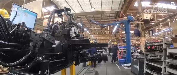 這是一個(gè)生產(chǎn)大拖拉機(jī)的農(nóng)機(jī)工廠,更是一個(gè)具備國際領(lǐng)先水平的現(xiàn)代數(shù)字化項(xiàng)目區(qū)。在傳統(tǒng)的產(chǎn)業(yè)工人身邊多了“數(shù)字工友”一起干活。