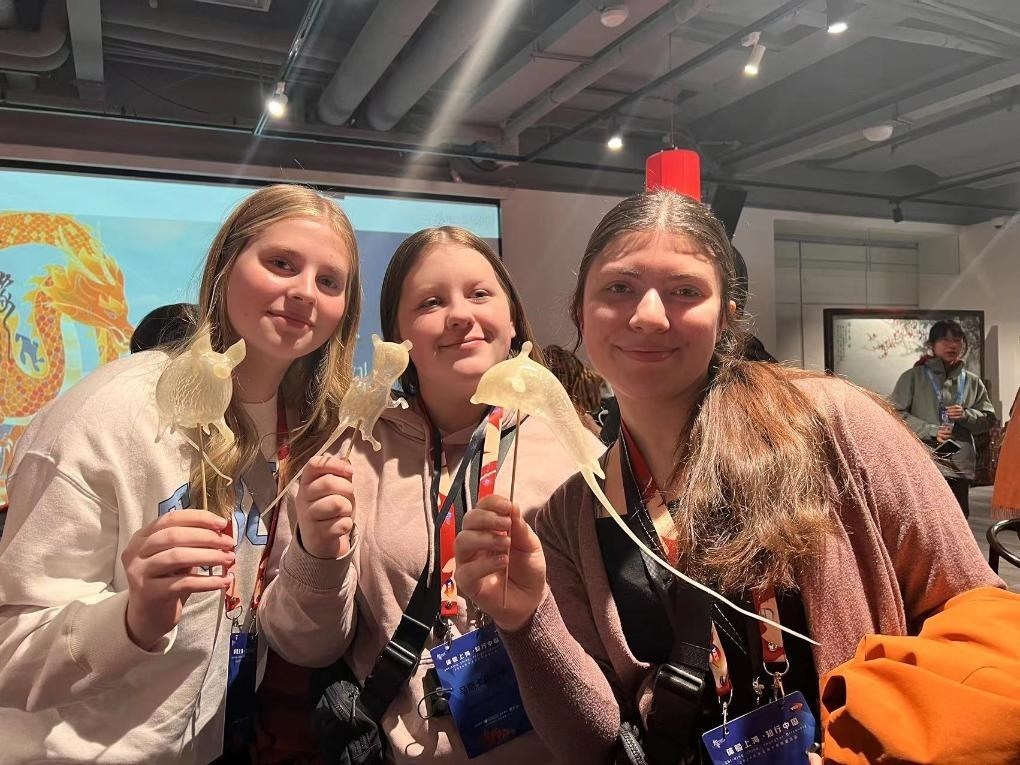△ 2024年1月下旬,馬斯卡廷中學(xué)訪華代表團(tuán)學(xué)生在上海體驗(yàn)民俗活動(dòng)。