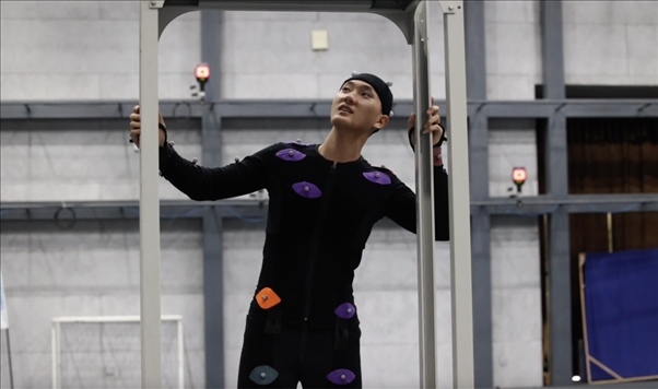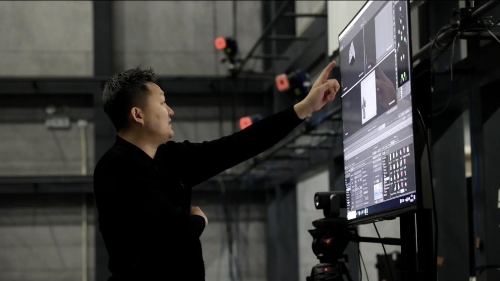 “這是動作數字孿生,利用光學動捕技術,棚內多個專業(yè)攝像頭捕捉演員身上的特定標記,以毫秒級的速率計算出角色的運動軌跡,然后將數據傳送到電腦上,實現虛擬人物的動作?!眹覄勇@公共技術服務平臺動捕棚的技術顧問崔盛輯向記者介紹道。