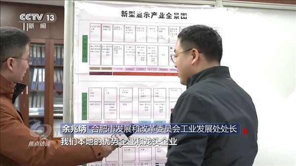 合肥市發(fā)展和改革委員會工業(yè)發(fā)展處處長余兆炳:“新型顯示產業(yè)全景圖上面顯示了合肥市發(fā)展新型顯示的產業(yè)鏈的上游、中游、下游本地的優(yōu)勢企業(yè)和龍頭企業(yè),有這個全景圖,我們對標作戰(zhàn)、掛圖作戰(zhàn)非??梢暬鲬?zhàn)?!?/p>