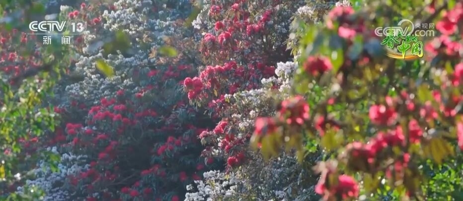 初春時(shí)節(jié),百花爭(zhēng)艷?,F(xiàn)在,我們看到的是云南楚雄州武定縣的萬(wàn)畝野生馬纓花。海拔2600多米的崇山峻嶺間,紅黃白粉相間搭配,掩映在翠綠的叢林之中;古道旁,牛羊成群,峰巒疊翠,迷人的春景生機(jī)盎然,令人心曠神怡。歷史上,這片區(qū)域曾經(jīng)是貿(mào)易往來(lái)的古驛道,傳承延續(xù)了上千年的彝族羅婺文化,馬纓花更是當(dāng)?shù)匾妥迦罕姷募橹畼?。春風(fēng)送暖,花期可持續(xù)到3月底。
