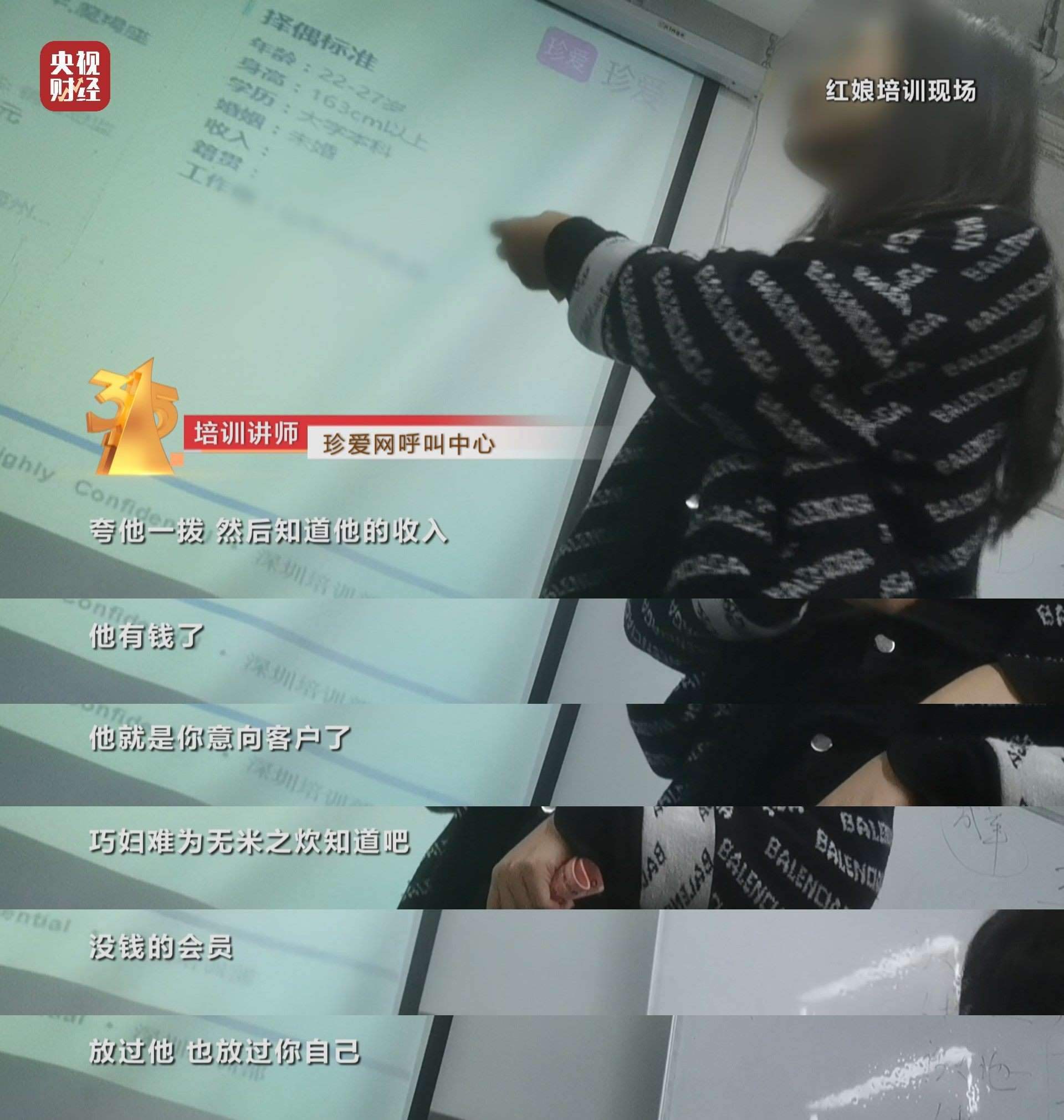 珍愛網(wǎng)呼叫中心 培訓(xùn)講師:要錢的時(shí)候一定要直接。做銷售沖到后面只有一句話,‘姐你相信我,現(xiàn)在開通,姐你一定會(huì)感謝我’‘姐你相信我,你相信我,不要想那么多,現(xiàn)在開。姐你相信我’。