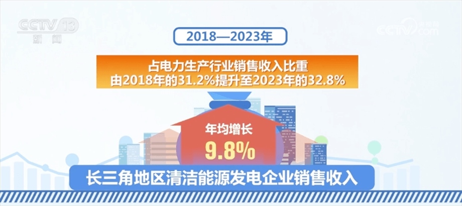 在綠色轉型方面,2018—2023年,長三角地區(qū)清潔能源發(fā)電企業(yè)銷售收入年均增長9.8%,占電力生產行業(yè)銷售收入比重由2018年的31.2%提升至2023年的32.8%,能源結構“綠色化”成效顯著。