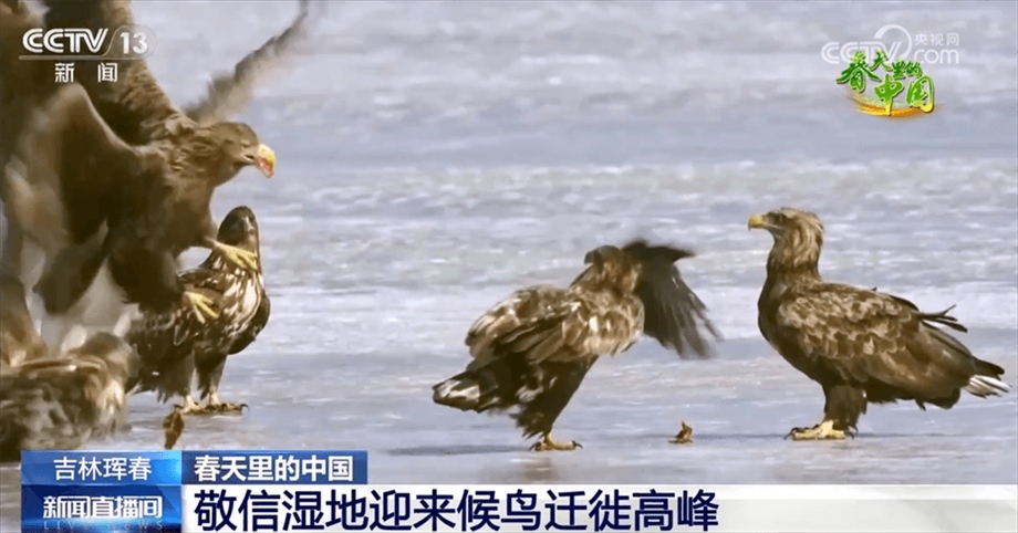 隨著氣溫回暖,吉林琿春敬信濕地迎來(lái)大批遷徙候鳥(niǎo)。白枕鶴、虎頭海雕、禿鷲等稀有鳥(niǎo)類爭(zhēng)相亮相,成為春日里一道亮麗的風(fēng)景。