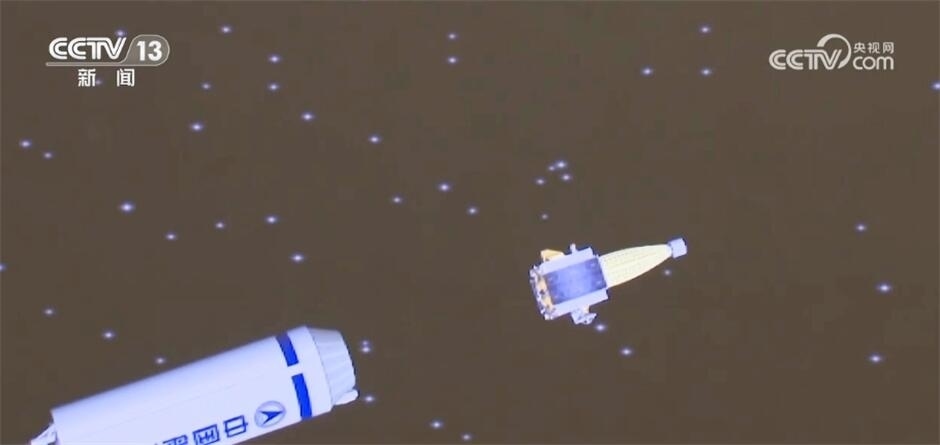我們看到長征八號運載火箭已經點火起飛。長征八號是我國新一代中型運載火箭,使用的是液氧煤油和液氫液氧這兩種清潔燃料。這也是它第一次執(zhí)行探月工程的發(fā)射任務。