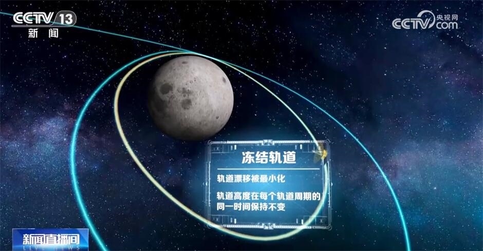 剛才提到了環(huán)月大橢圓凍結軌道,那什么是凍結軌道?所謂凍結軌道是一種特殊的航天器軌道,在這類軌道上運行的航天器,通過恰當地設計軌道參數,軌道漂移可以被最小化。通常位于這種軌道上的衛(wèi)星在很長一段時間內,其軌道高度在每個軌道周期的同一時間是保持不變的。因此,一旦進入這個軌道,鵲橋二號將最大程度地節(jié)省燃料,能夠保證它的軌道的遠月點一直位于月球南極區(qū)域上方,從而確保了它在為期8年的設計壽命中,長時間、穩(wěn)定地支持后續(xù)南極地區(qū)的探月任務。