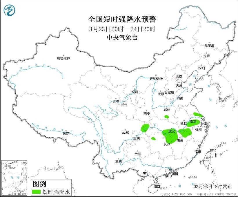 央視網(wǎng)消息:中央氣象臺3月23日18時繼續(xù)發(fā)布強(qiáng)對流天氣藍(lán)色預(yù)警。預(yù)計(jì)3月23日20時至24日20時,湖北東部、湖南北部、江西北部、重慶東南部、貴州北部等地的部分地區(qū)將有8-10級雷暴大風(fēng)或冰雹天氣;安徽南部、江蘇南部、湖北東南部、湖南東北部、江西北部、浙江北部、重慶北部等地的部分地區(qū)將有短時強(qiáng)降水天氣,最大小時雨量20-40毫米,局地可達(dá)50毫米以上。