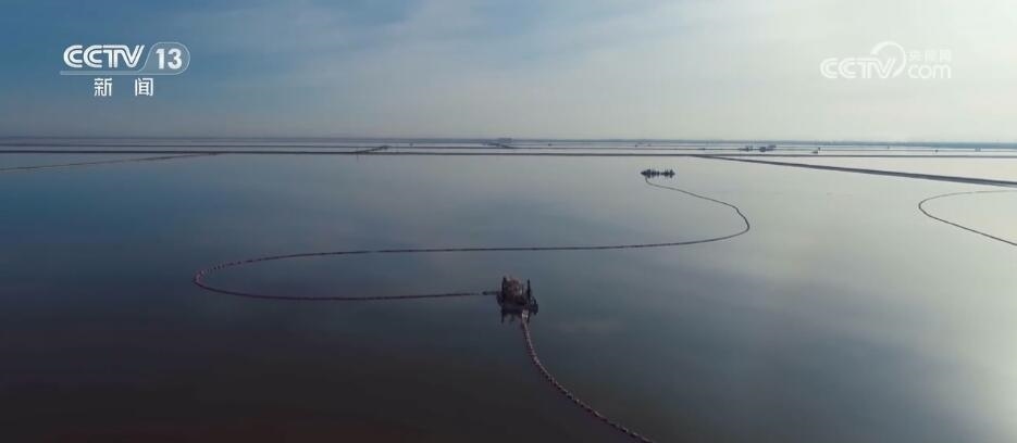 從空中俯瞰,一望無垠的鹽池里碧波蕩漾,一艘艘采鹽船在碧綠的湖面上緩緩游動作業(yè)。在當?shù)?,含有各種鹽類礦物質的水被稱作“鹵水”?!胞u水”如何轉變成鉀肥?第一步便是采鹽。