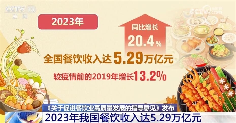 2023年我國(guó)餐飲收入達(dá)5.29萬億元,同比增長(zhǎng)20.4%。那么,國(guó)家為什么在此時(shí)出臺(tái)促進(jìn)餐飲業(yè)高質(zhì)量發(fā)展的指導(dǎo)意見?餐飲業(yè)如何實(shí)現(xiàn)高質(zhì)量發(fā)展?目前面臨哪些問題?來看專家的解讀。?