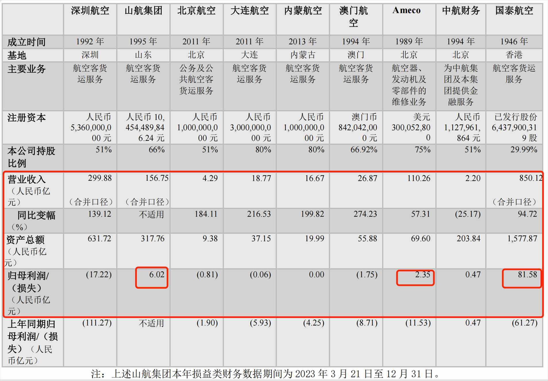 具體來看國航,分別控股和持股的山航集團(tuán)與國泰航空實(shí)現(xiàn)盈利。山航集團(tuán)去年?duì)I收156.75億元,歸母凈利潤為6.02億元;國泰航空去年?duì)I收850.12億元,同比增超九成,歸母凈利潤為81.58億元,上年同期為虧損61.27億元;內(nèi)蒙古航司實(shí)現(xiàn)營收16.67億元,同比增近2倍,歸母凈利潤為0元,上年同期為虧損4.25億元。航空器維修公司Ameco去年?duì)I收110.26億元,同比增57.31%,實(shí)現(xiàn)歸母凈利潤為2.35億元,去年同期為虧損11.53億元。