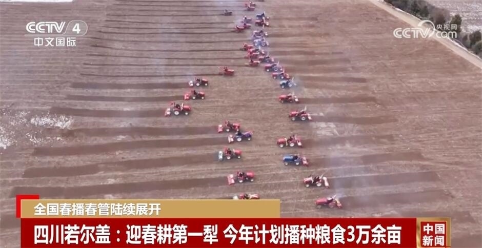 在四川若爾蓋,傳統(tǒng)農(nóng)耕項(xiàng)目“二牛抬杠”迎來春耕第一犁,騎手們開著旋耕機(jī)在田地間輪回翻耕。農(nóng)業(yè)生產(chǎn)與鄉(xiāng)風(fēng)文明有機(jī)結(jié)合,開啟了今年計(jì)劃播種糧食3萬余畝的工作。