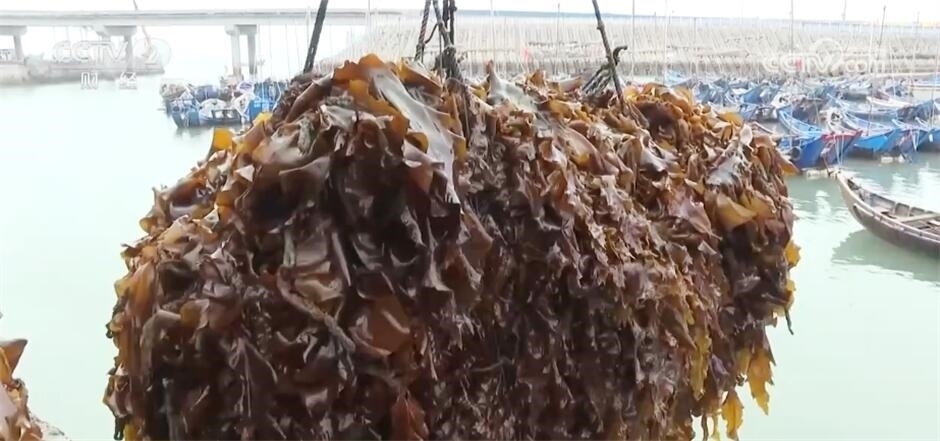 眼下,福建福州連江縣10.3萬畝優(yōu)質(zhì)海帶進(jìn)入采收期,不少海帶養(yǎng)殖戶搶抓晴好天氣收割海帶,海面上一片熱鬧、繁忙景象。?
