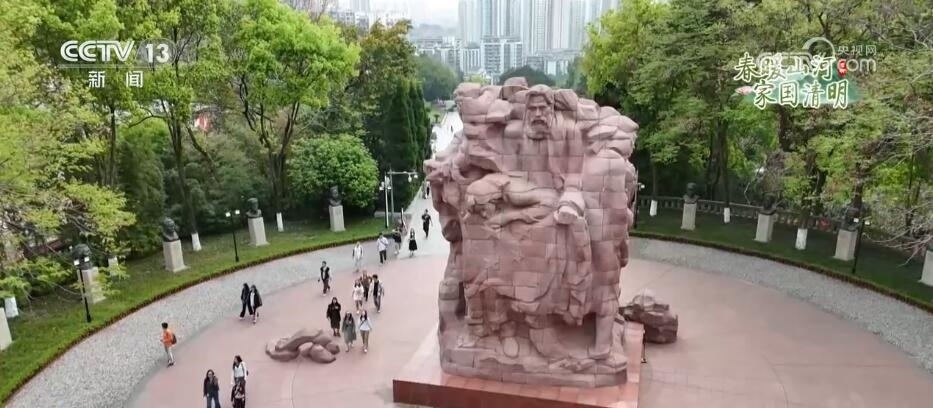 這里是位于重慶市沙坪壩區(qū)的歌樂(lè)山烈士陵園。1939年至1949年,以渣滓洞、白公館為主的重慶軍統(tǒng)集中營(yíng)是國(guó)民黨囚禁和屠殺中共黨員、抗日愛(ài)國(guó)將領(lǐng)、民主人士及其他革命志士的秘密監(jiān)獄。重慶解放后,人民政府將犧牲的300多名英烈遺骸合葬于此,并于1954年建成烈士墓園和烈士紀(jì)念碑。在烈士陵園中,聳立著一座由438塊紅色花崗石組成的烈士群雕。人們來(lái)到這里獻(xiàn)花祭掃、默哀緬懷,汲取砥礪前行的力量。