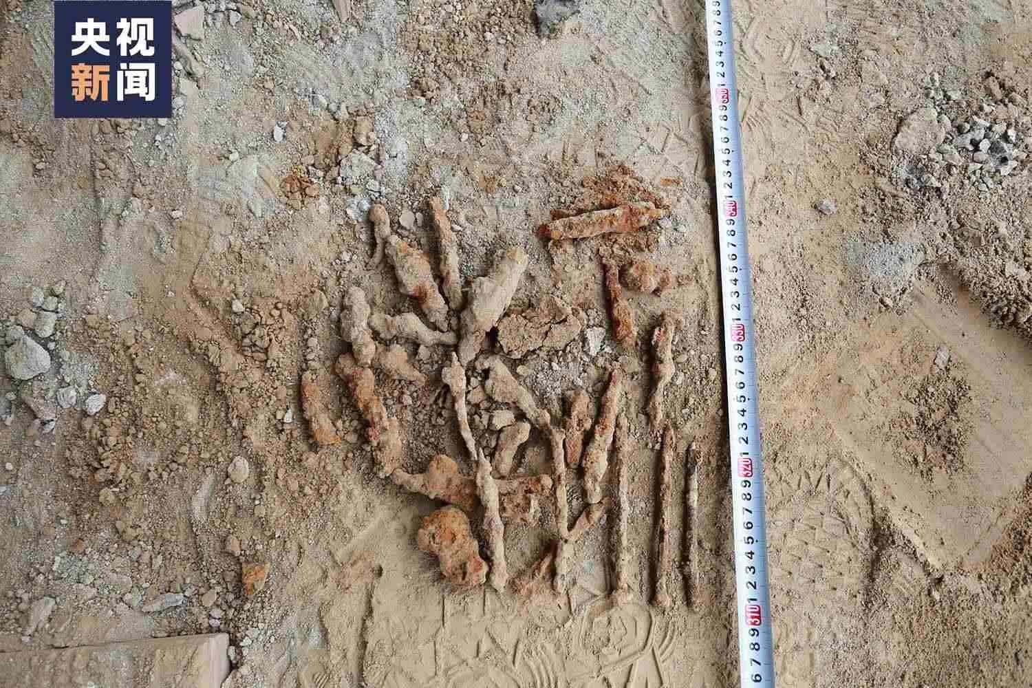△雪村戰(zhàn)斗烈士墓出土的鐵釘,猜測(cè)是當(dāng)?shù)厝罕娪脕?lái)掩埋烈士的門板腐蝕后留下的。