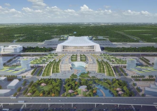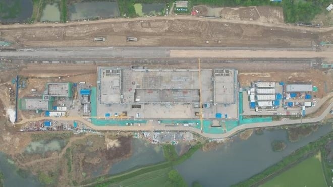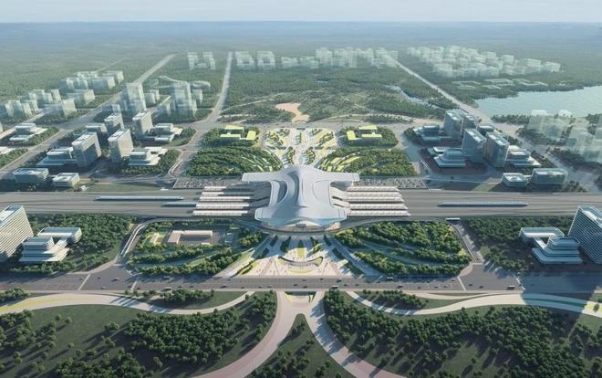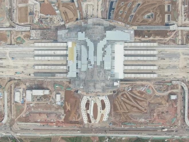 車站采用鋼結構加鋁鎂錳板金屬屋面,整體空間造型提煉和吸取了明代傳統建筑造型特點,結合傳統與現代的設計手法,打造具有“風水寶地,祥瑞所鐘”設計理念的地域性地標建筑。目前,站房主體結構已施工完畢,正在進行屋面鋼桁架施工。