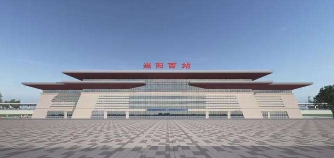 站房以“華夏雄風,荊楚一脈,忠義當陽”為設計理念,建筑立面提取了荊楚文化中傳統建筑的城樓、重檐、臺基等元素,建筑整體形象融合古今、端莊大氣,極富有荊楚文化的地域性特色。目前,當陽西站主體結構施工正加速推進,高架候車層結構建設已完成95%。
