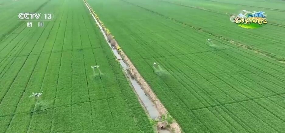 在江蘇淮安,470多萬畝小麥進入破口抽穗期。在淮安市盱眙縣的三河農(nóng)場里,無人機和植保機分別在空中和地面給麥田施肥、除蟲。今年,當?shù)卮罅ν七M數(shù)字農(nóng)業(yè)建設(shè),建立了智慧農(nóng)業(yè)平臺,農(nóng)業(yè)部門利用平臺提供的土壤濕度、溫度,作物長勢等數(shù)據(jù),給種植戶提供精準的病蟲害防治和施肥方案,并調(diào)度多種農(nóng)機投入田間管理,讓春管更高效,為農(nóng)業(yè)生產(chǎn)插上“科技翅膀”。