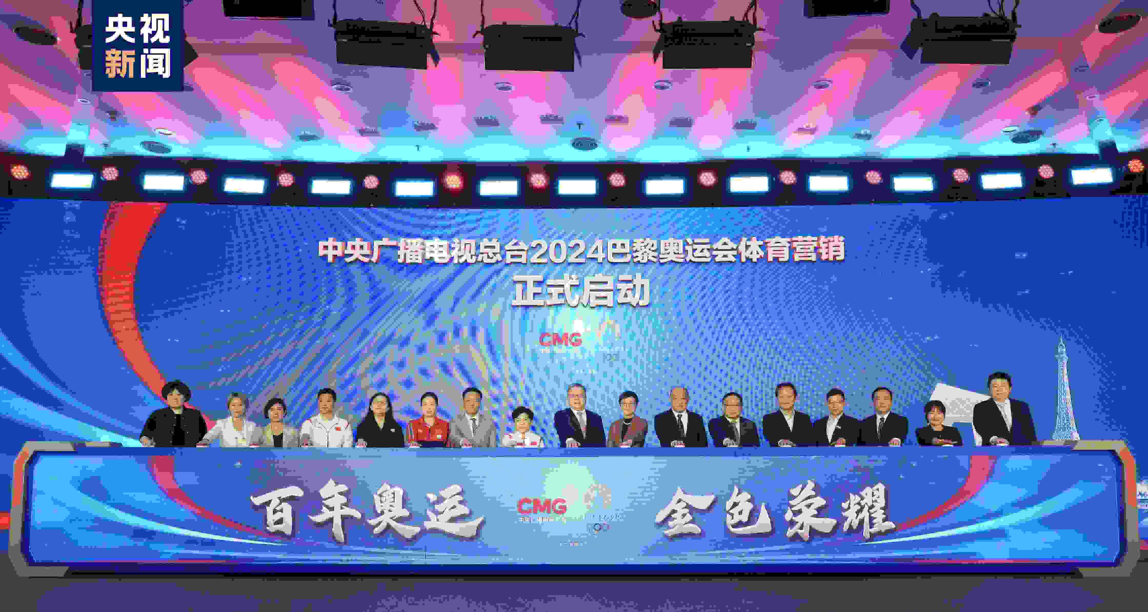 中央廣播電視總臺(tái)編務(wù)會(huì)議成員兼總經(jīng)理室總經(jīng)理彭健明出席活動(dòng),并與總臺(tái)財(cái)經(jīng)節(jié)目中心、體育青少節(jié)目中心、視聽(tīng)新媒體中心、技術(shù)局、新聞新媒體中心、文藝節(jié)目中心、總經(jīng)理室相關(guān)負(fù)責(zé)人,奧運(yùn)冠軍鄧亞萍、高崚、何沖,東鵬飲料(集團(tuán))股份有限公司、寶潔(中國(guó))有限公司、安利(中國(guó))日用品有限公司、上海百雀羚日用化學(xué)有限公司、小紅書(shū)科技有限公司、安踏(中國(guó))有限公司相關(guān)負(fù)責(zé)人等,共同啟動(dòng)總臺(tái)2024巴黎奧運(yùn)會(huì)體育營(yíng)銷。