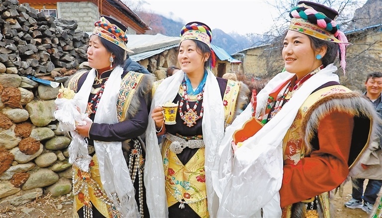 下尼屋的田壟上,35歲的扎西旺姆正在和相熟的村民一起干農(nóng)活,她是從波密縣八蓋鄉(xiāng)嫁到這里的,已經(jīng)在尼屋生活了7年?!斑@里和八蓋一樣,都以農(nóng)耕為主,氣候也差不多,人也很熱情,我和鄰居們經(jīng)常一起挖蟲(chóng)草、采松茸、干農(nóng)活,感覺(jué)很幸福!”