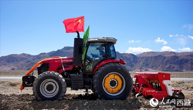 機(jī)械化耕種青稞。人民日?qǐng)?bào)記者 瓊達(dá)卓嘎攝