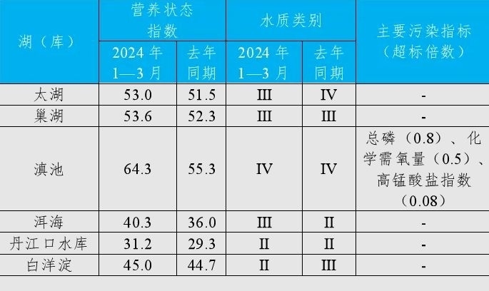 重點(diǎn)湖(庫)水質(zhì)狀況及營養(yǎng)狀態(tài)