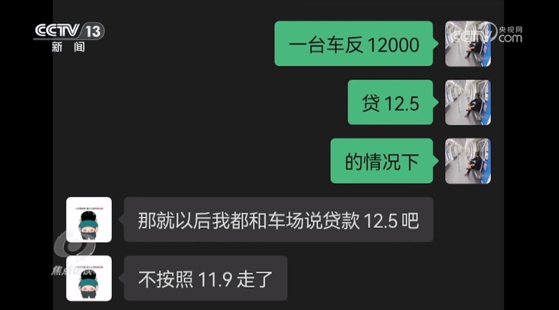 所謂物流公司內(nèi)部的一段聊天記錄顯示,一位司機(jī)購(gòu)買(mǎi)的一臺(tái)車,物流公司的人和貸款公司一起運(yùn)作,把原本應(yīng)該是11.9萬(wàn)元的貸款總額提高到12.5萬(wàn)元,物流公司人員從中可以獲取12000元的返利。