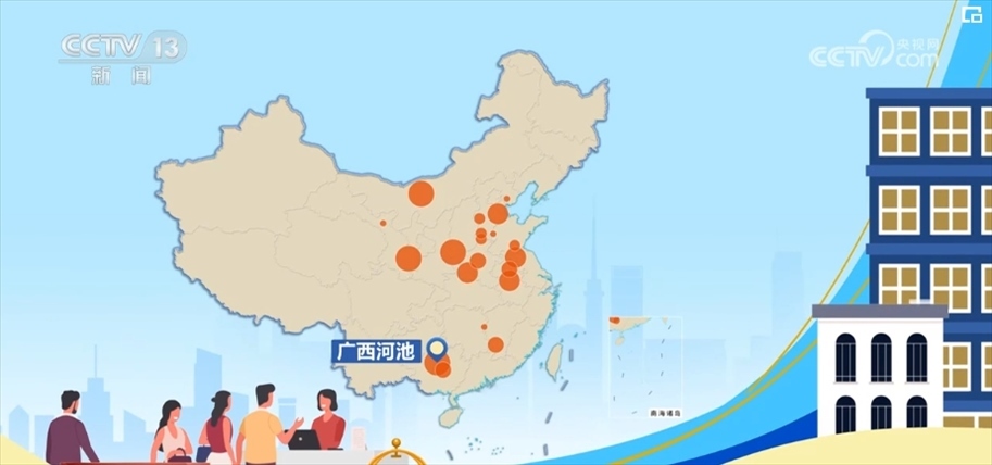 大家都去哪兒了?通過(guò)分析平臺(tái)上335個(gè)目的地的同比增幅數(shù)據(jù)后,找到了2024年“五一”最受歡迎的小眾旅游目的地。在這張熱力圖上,標(biāo)注的是增幅前20的小眾目的地城市,圓圈大小表示增幅的高低,排名第一的廣西河池的酒店和票務(wù)預(yù)訂同比增長(zhǎng)近四倍,而分布在10個(gè)不同省份的這20個(gè)城市,同比增幅都在一倍以上。