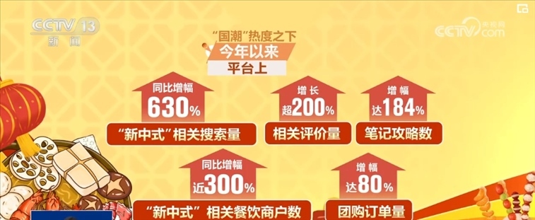 “國(guó)潮”熱度之下,2024年以來(lái),平臺(tái)上“新中式”相關(guān)搜索量同比增幅也達(dá)到了630%,相關(guān)評(píng)價(jià)量增長(zhǎng)超200%,筆記攻略數(shù)增幅達(dá)184%?!靶轮惺健毕嚓P(guān)餐飲商戶數(shù)同比增幅近300%,團(tuán)購(gòu)訂單量增幅達(dá)80%。