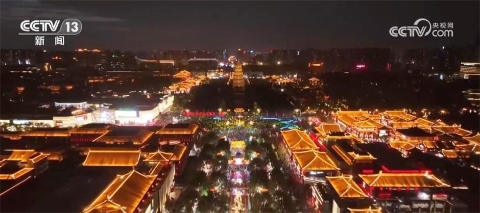 晚上10點(diǎn)的西安大唐不夜城,燈光璀璨、游人如織。