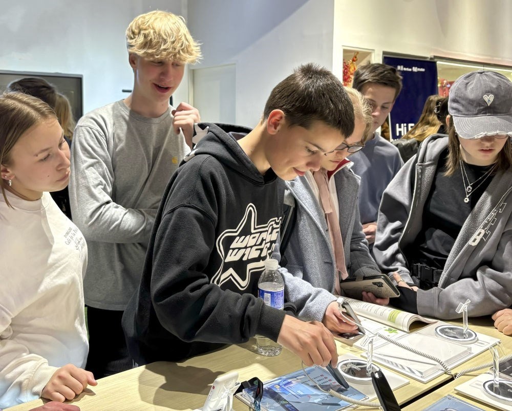 2024年4月9日,中德兩國中學(xué)生在位于北京中關(guān)村軟件園一家企業(yè)參觀。新華社記者 趙旭 攝