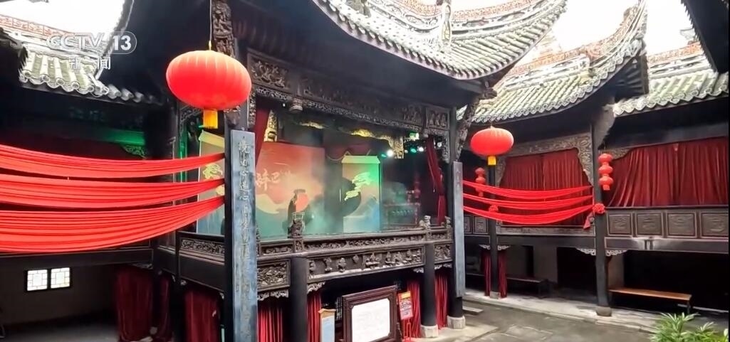 古戲臺(tái)見證了川渝人對(duì)于戲曲的熱情。如今,10多個(gè)平均年齡不到30歲的年輕人每天都會(huì)在這里演出。“90后”的蔡文燦就是川劇變臉的表演者,他已經(jīng)在這里演了五年。