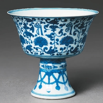 清代青花纏枝蓮?fù)需笪募y高足供碗。中國(guó)大運(yùn)河博物館供圖