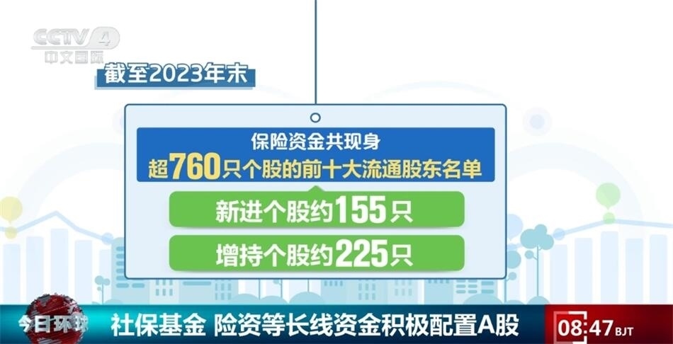 央視網(wǎng)消息:A股2023年年報日前披露結(jié)束,上市公司的前十大流通股東情況顯示,包括社?;?、保險資金、合格境外機(jī)構(gòu)投資者等在內(nèi)的長線資金入市步伐正在不斷加快,A股中長期投資力量不斷壯大。