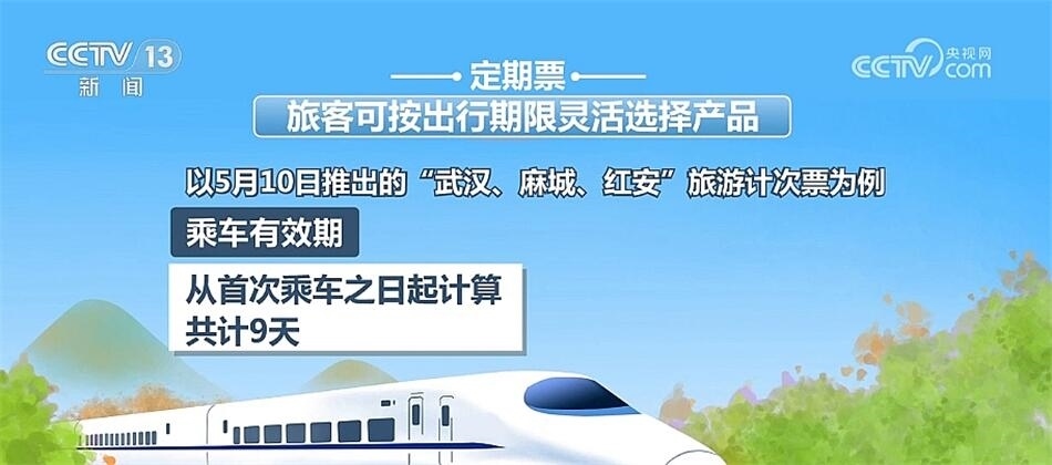 定期票是指旅客可按出行期限靈活選擇產(chǎn)品。以5月10日推出的“武漢、麻城、紅安”旅游計(jì)次票為例。乘車有效期就是指從首次乘車之日起計(jì)算,共計(jì)9天。