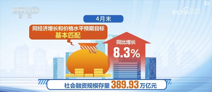 4月末,社會(huì)融資規(guī)模存量389.93萬億元,同比增長8.3%,同經(jīng)濟(jì)增長和價(jià)格水平預(yù)期目標(biāo)基本匹配。1—4月,社會(huì)融資規(guī)模增量累計(jì)為12.73萬億元,處于歷史同期較高水平。