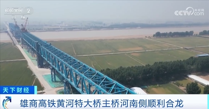 央視網(wǎng)消息:雄商高鐵是京雄商高鐵的一段,連接河北省雄安新區(qū)和河南商丘。5月18日,雄商高鐵黃河特大橋河南側(cè)的鋼桁梁架設(shè)施工全部完成,這標(biāo)志著主橋河南側(cè)已經(jīng)順利合龍。截至目前,全橋鋼桁梁架設(shè)的進(jìn)度超過了87%,預(yù)計(jì)主橋全橋7月份合龍。