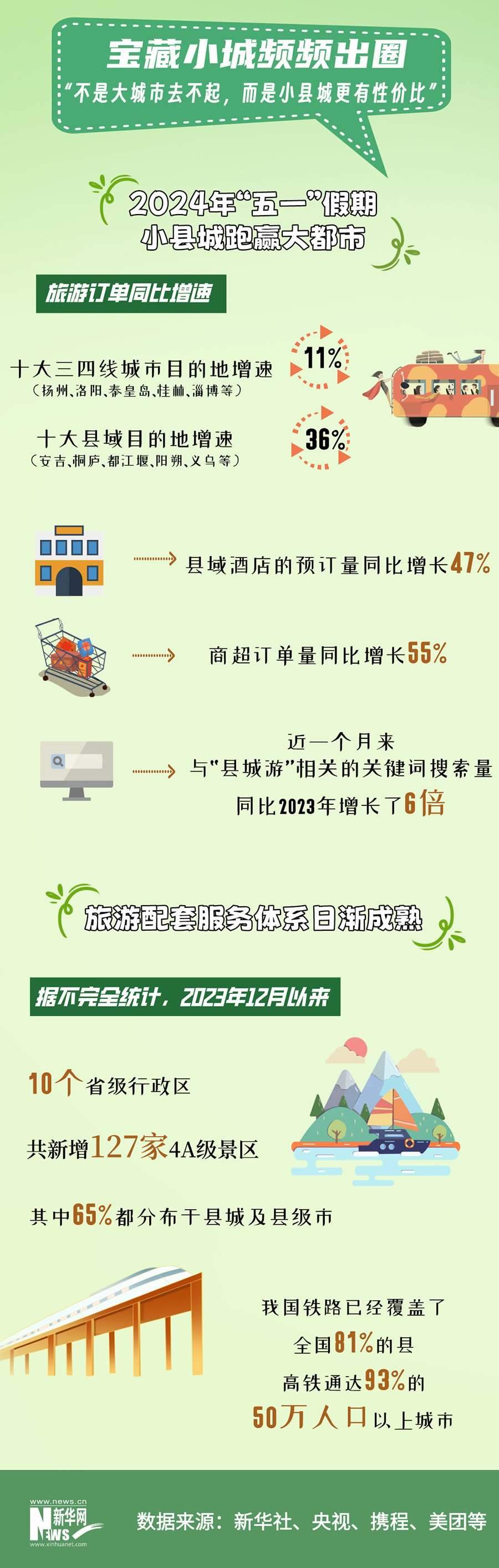 “不是大城市去不起,而是小縣城更有性價比”。一眾“寶藏”小城的涌現(xiàn),背后是供需兩端的“雙向奔赴”:出游者旅游理念不斷演進,讓小縣城進入了大眾的視野。縣域旅游配套服務(wù)體系日漸成熟,為出行者提供了更好的旅游體驗。