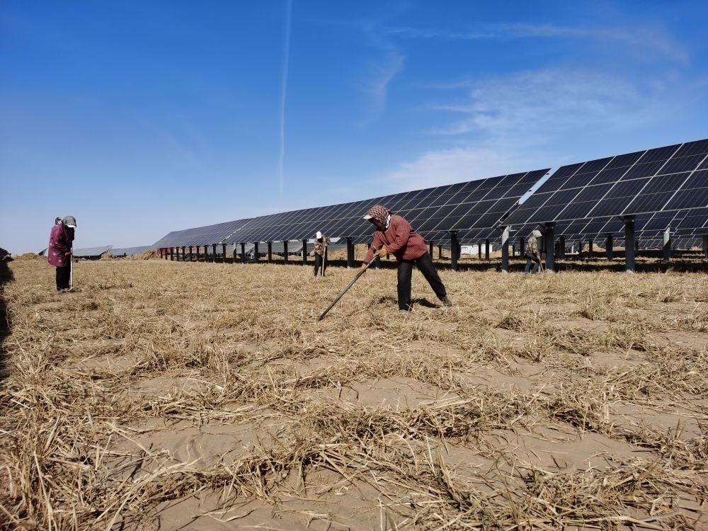 烏蘭布和沙漠總面積1500多萬畝,沙漠治理將大規(guī)模采用“板上發(fā)電、板下種植、治沙改土、帶動鄉(xiāng)村振興”四位一體產(chǎn)業(yè)發(fā)展模式,努力把沙海變?yōu)椤熬G?!?。