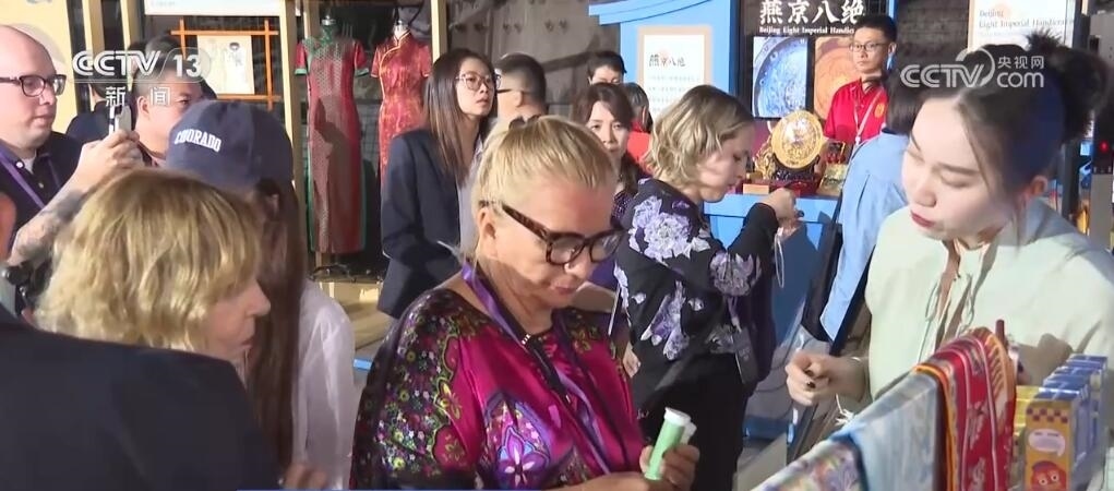 5月24日,北京入境旅游發(fā)展大會開幕式在首鋼園舉辦,來自全球的百名旅行商代表前來參展,中外旅游企業(yè)進(jìn)行點(diǎn)對點(diǎn)洽談?,F(xiàn)場搭建了非遺展區(qū),京式旗袍傳統(tǒng)制作技藝等特色非遺項(xiàng)目吸引外國旅行商互動體驗(yàn),不少人還現(xiàn)場選購絲綢、茶葉等商品。